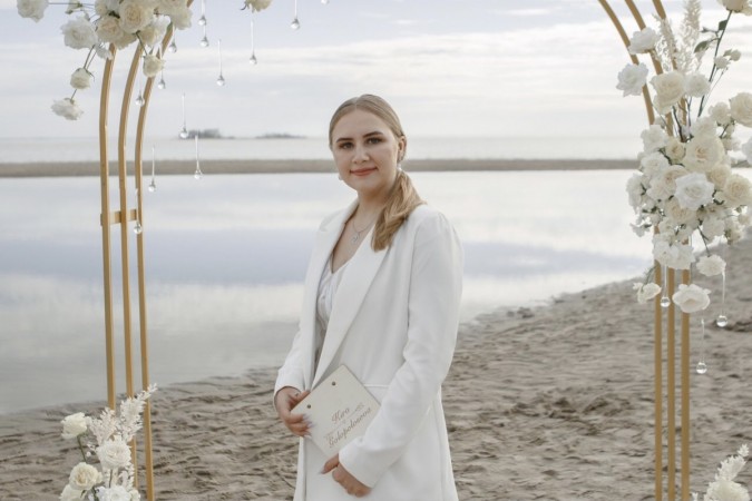 Рада видеть тебя, моя прекрасная невеста! Меня зовут Кира и я являюсь ведущей свадебной церемонии. Для меня, свадебная церемония — это самая торжественная, искренняя и центральная часть всего свадебного дня. Это самый трогательный момент, когда рождается семья!